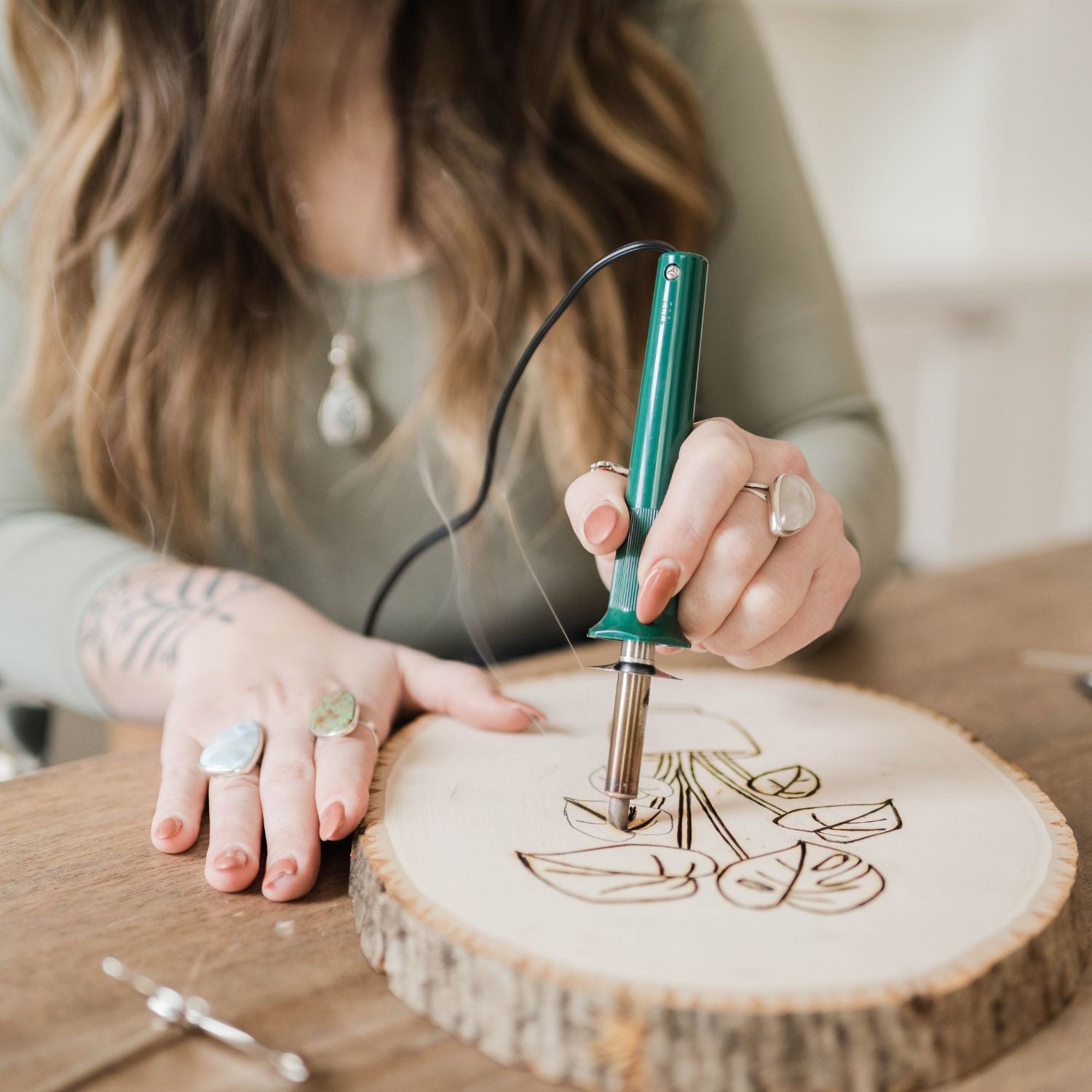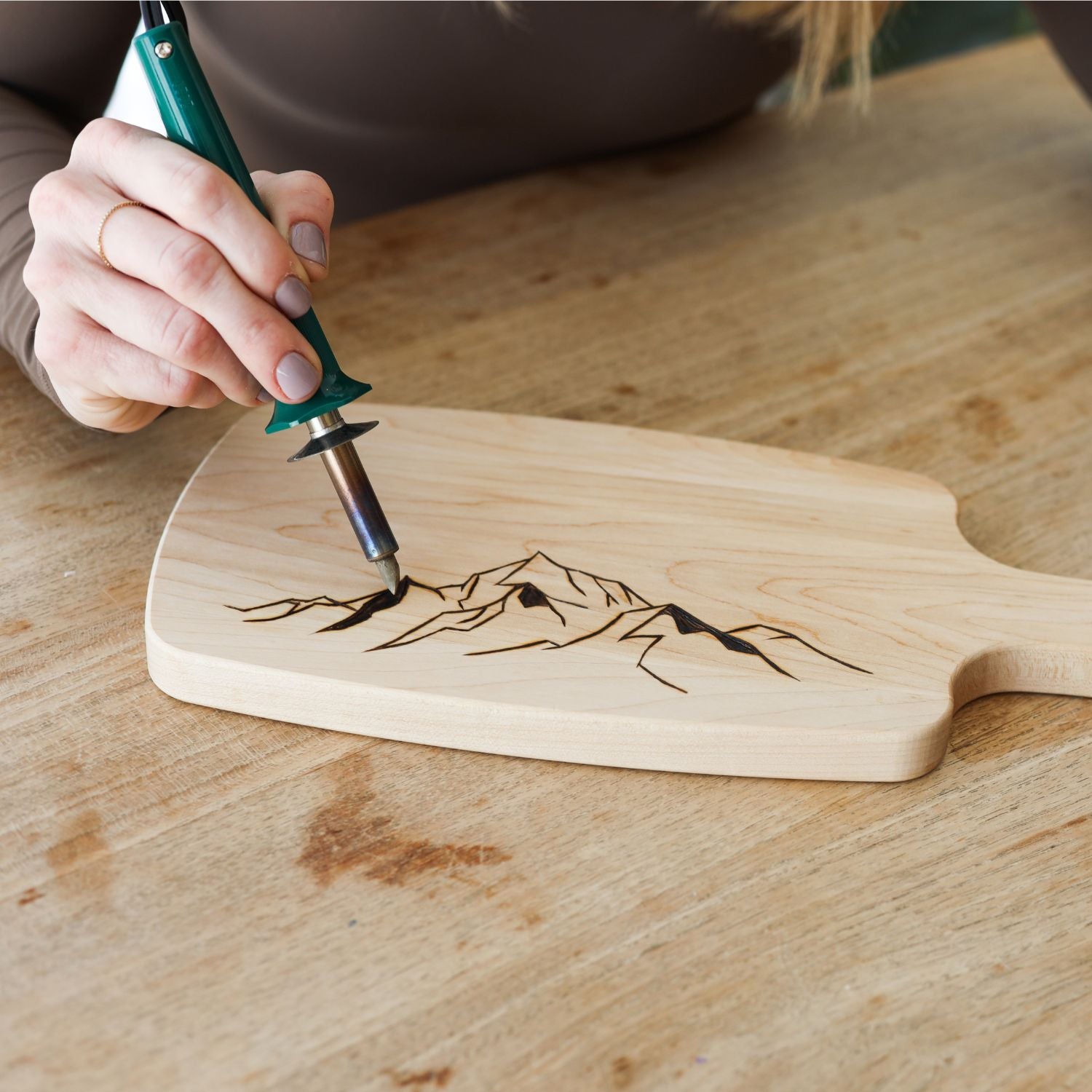 - Trace design onto select wood item (wood slice, coaster, or cutting board)