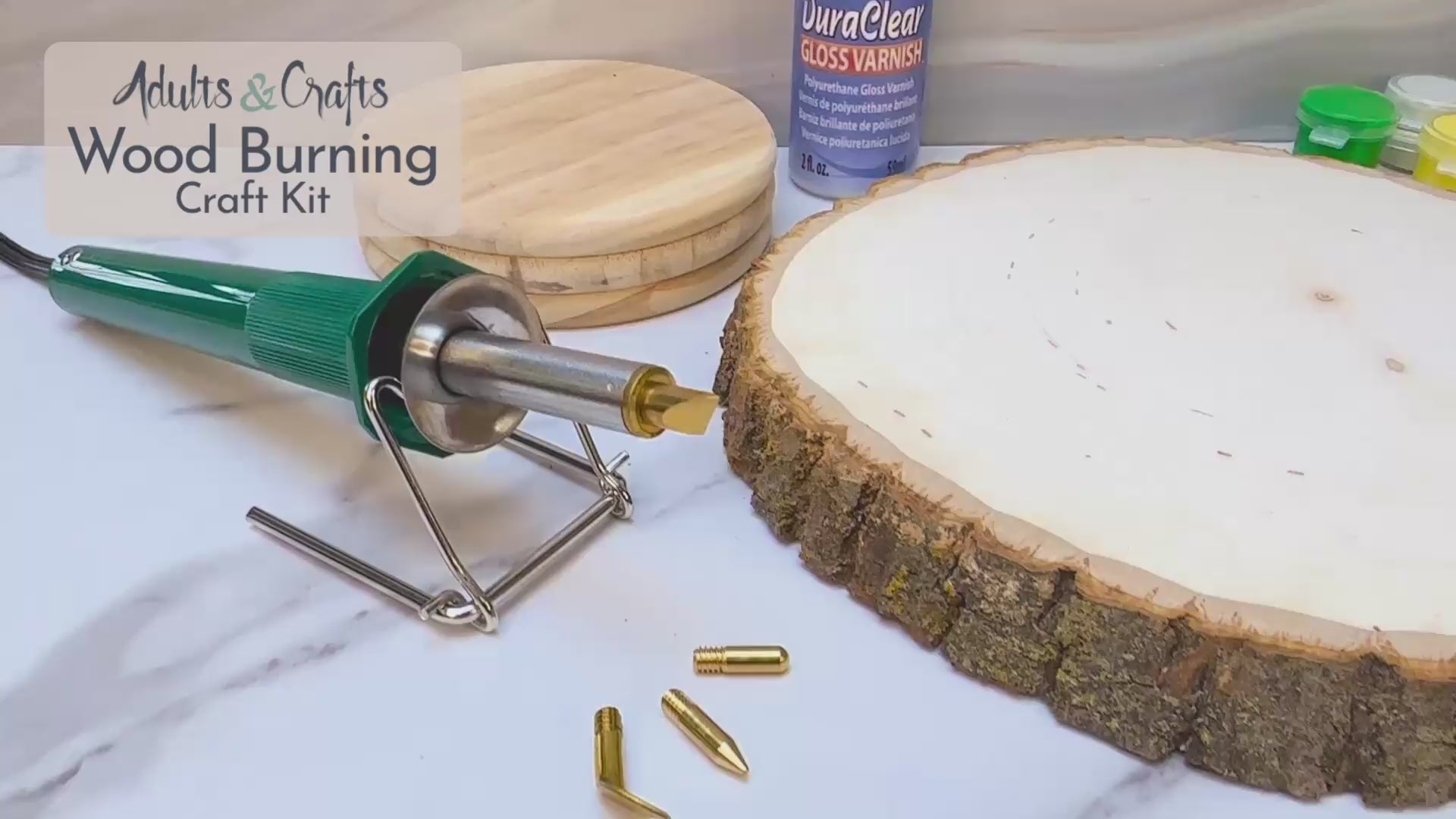 This project takes about one to two hours, depending on the detail and size of the design you choose. Every kit includes a natural 10x8-inch wood slice. Crafters can add additional wood products to continue their wood-burning journey. We do not recommend this project for children.